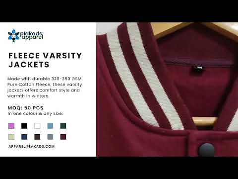 The La Maroon Varsity Jacket pairs a relaxed varsity silhouette with a deep, warm maroon body that reads timeless across campus, team, and lifestyle ranges. This shade anchors collections where heritage tone and dependable construction matter, presenting a cohesive canvas for badges, lettering, and tonal or contrast trims. Panels are CAD-graded and cut in-house to maintain body length, sleeve alignment, and shoulder balance across sizes, so the rich maroon stays visually uniform from S to XXL. Rib finishes are set with controlled stitch densities to hold shape through wear, while the snap-front is stabilized by a fused placket to keep hardware registration clean and functional. Seams use industrial overlock with lockstitch reinforcement for edge control and durability in daily rotation. Integrated dyeing and washing help standardize shade, shrinkage, and hand feel, ensuring your approved La Maroon sample translates predictably to bulk runs. White-label operators can onboard quickly with ready fabric support and standardized build, while established programs benefit from consistent replenishment and embellishment readiness. Appliqués, embroidery, and patches are executed with proper backing and placement control to protect drape and snap alignment, allowing the maroon base to frame graphics without color migration distractions. Wash Care Communication for end consumer: Legacy cotton fleece, approx. 300 GSM. Dry wash recommended. If washing, use cold water, gentle cycle; wash dark shades separately. Tumble dry low or line dry in shade. Low iron on reverse; avoid ironing over snaps and decorations.